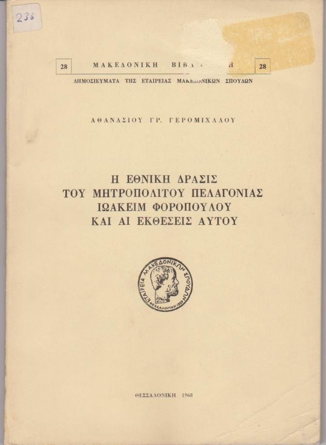 Η εθνική δράσις του Μητροπολίτου Πελαγονίας Ιωακείμ Φοροπούλου και αι εκθέσεις αυτού