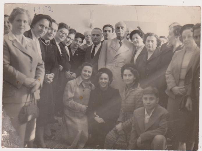 [Θεσσαλονίκη, Πλαστήρας]: Φωτογραφία – στο κέντρο ο Πρωθυπουργός Νικ. Πλαστήρας και ο Σοφ. Βενιζέλος, οι κυρίες που περιβάλουν τους δύο πολιτικούς, πιθανόν, είναι μέλη της Π.Ο.Φ.Ε. [=Πανελληνίου Οργανώσεως Φιλελευθέρων Ελληνίδων], “φωτο ρεπορτάζ Γιάννη Κυριακίδη, Θεσσαλονίκη”, ασπρόμαυρη, διαστάσεις 18Χ13