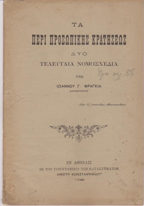 Τα περί προσωπικής κρατήσεως δύο τελευταία νομοσχέδια