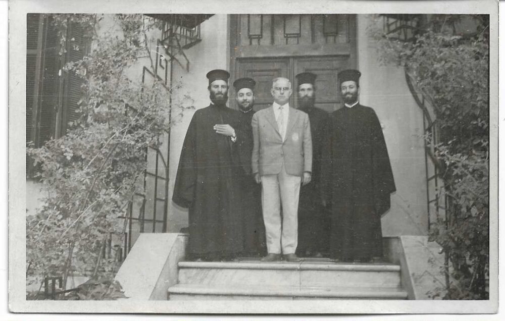 [Φωτογραφία]. Ανωτέρα Εκκλησιαστική Σχολή Θεσσαλονίκης, στο κέντρο της πρώτης σειράς ο διευθυντής Σάββας Νανάκος, ασπρόμαυρη, διαστάσεις 14Χ9cm ποσότητα