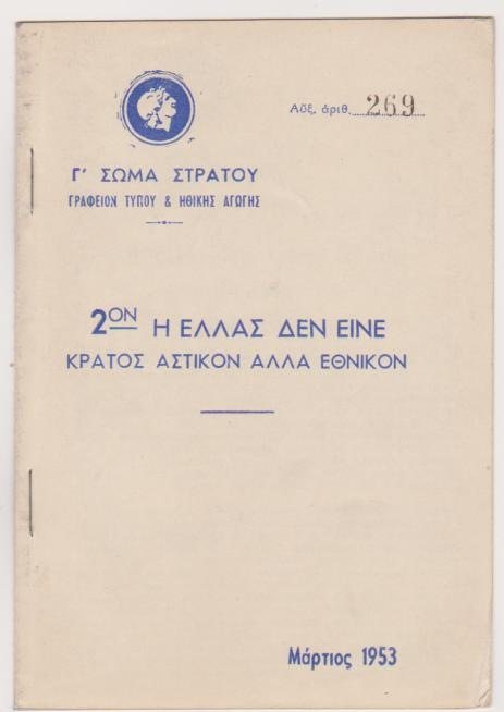 2ον. Η Ελλάς είναι Κράτος Εθνικόν όχι Αστικόν [“Τα εκδοθέντα αντίτυπα τυγχάνουσιν αριθμημένα”/269]